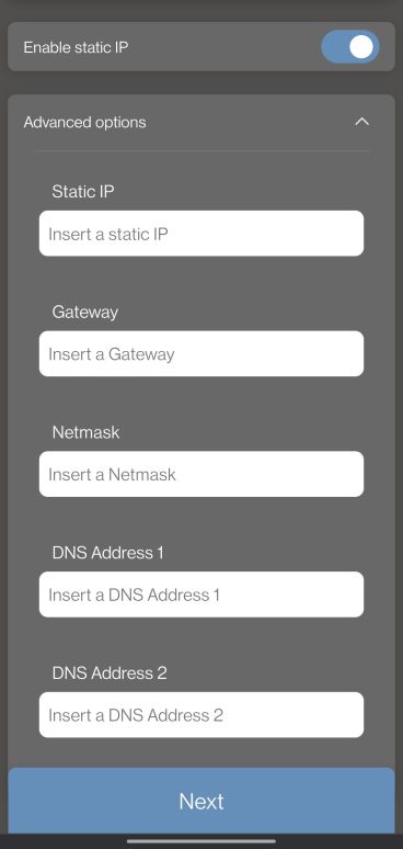 6. Seleccionamos el tipo de configuración de nuestra red e introducimos los parámetros necesarios para iniciar la conexión:
