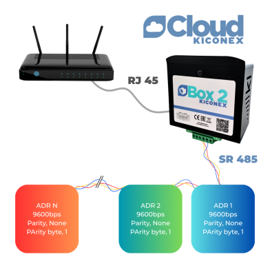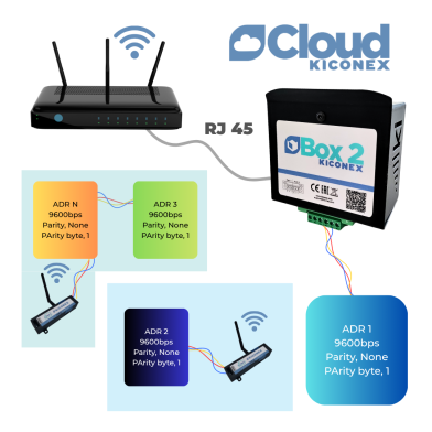 kiWi (o kiconex wireless) es nuestra solución para transformar controles con comunicación modbus RTU a comunicación modbus TCP/IP. Esta comunicación permite conectar dispositivos de manera inalámbrica a la red ethernet local de la instalación donde se ubica el kiBox principal.