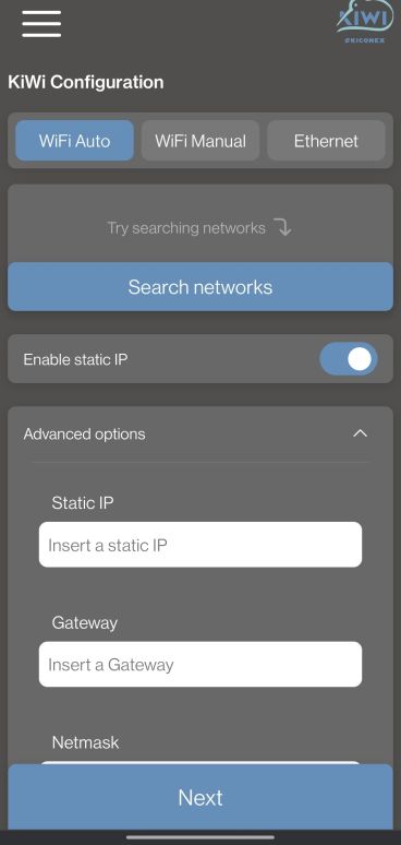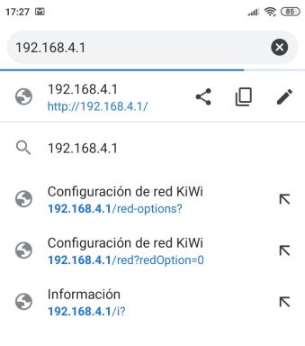 Se repite el proceso del apartado anterior, pero en este caso es necesario conectarse a la misma red WiFi que se configuró en el KiWi , y la IP a introducir en el navegador es la IP que se configuró en dicho kiwi.