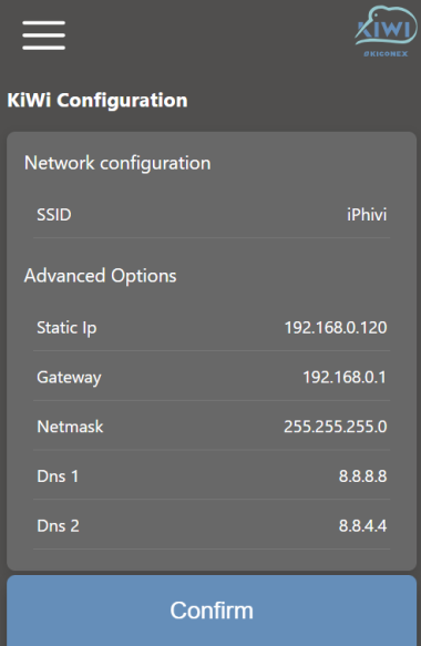 Si por cualquier circunstancia el kiwi no puede conectarse a la red WiFi configurada, éste volverá a activar su WiFi "KIWI_XXXXX" para poder hacer la configuración.