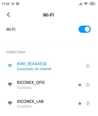 Ejemplo de visualización de la red wifi del kiwi - Si no ha sido redirigido al portal de configuración debe abrir navegador Chrome, Firefox o similar.